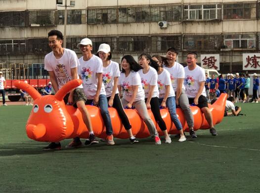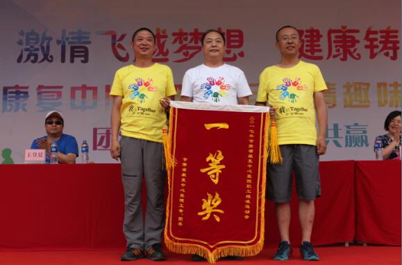 这是医院举办的首次由全体职工和住院残疾患者共同参与的大型趣味运动会。运动会由医院党委牵头,院工会、团委具体承办。旨在通过健康运动,强身健体,增强职工凝聚力和向心力,以更好的精神状态投入残疾人康复医疗工作,为广大残疾患者和普通患者及早康复、融入社会做出更大成绩。运动会共分猛龙队、阳光队、雄鹰队和快乐队四支队伍,设有“百发百中”、“疯狂毛毛虫”、“飞轮赶猪”、“动感五环”、“车轮滚滚”、“乾坤大挪移”等多个比赛项目。竞技场上,干部职工们全身心投入,尽情激扬,挥洒自我,身心得到释放,敢于拼搏,勇往直前的团队合作与竞技精神在此刻尽显。最引人注目和拍案叫绝的莫过于由16名住院残疾患者共同参与的运动项目——飞轮赶猪。该比赛项目每队由1名残疾患者手持木棒,驱赶充气皮球制成的小猪,到指定地点,用时最短者获胜。这是医院为促进残疾患者身心和身体功能康复,特邀16名住院偏瘫、截瘫患者共同参与、合作、分享运动快乐而专门设计的项目。赛场上,每个残疾患者都全身心积极投入,用汗水、力量和团结,赢得广大观众的热烈掌声。此时此刻,患者笑了,这是他们最大的幸福,是对人生自强不息、顽强拼搏精神境界的有力诠释;此时,广大医护人员也激动的笑了,因为患者今天能够全力参与活动,凝结了他们长久以来不放弃和坚持不懈努力工作的成果。经过为期一天轻松愉悦的趣味运动会,雄鹰队获得团体一等奖。