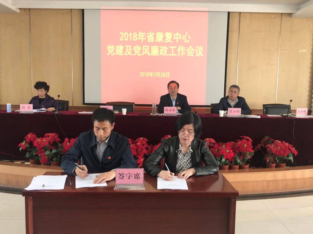 会议书面传达了省纪委、省残联党风廉政建设工作会议精神,中心党委书记分别与党委委员签订了《2018年全面从严治党主体责任书》。