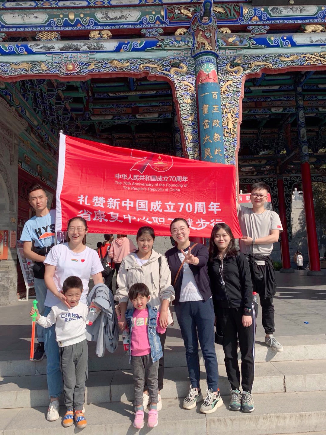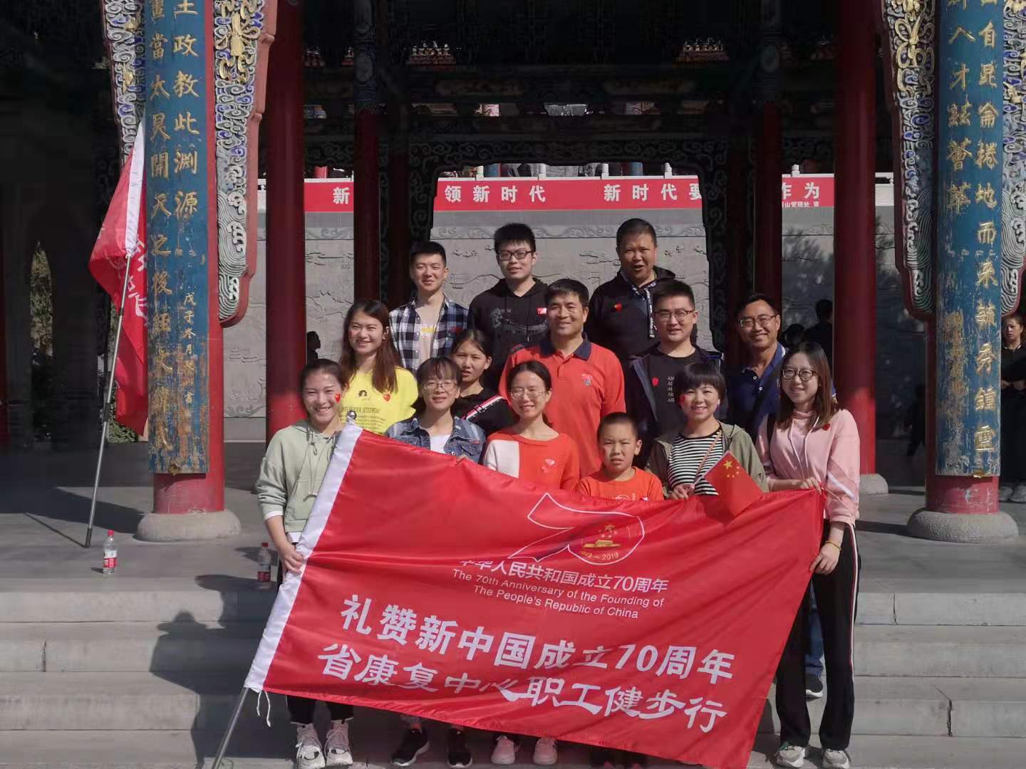 盛世华诞,激昂奋进。9月28日,在中华人民共和国成立70周年即将到来之际,省康复中心医院党委组织广大职工开展“我健康、我快乐”健步行活动,以高昂的精神姿态和残疾人工作者的初心使命向伟大祖国70华诞献礼,祝福伟大祖国母亲繁荣昌盛,生日快乐。