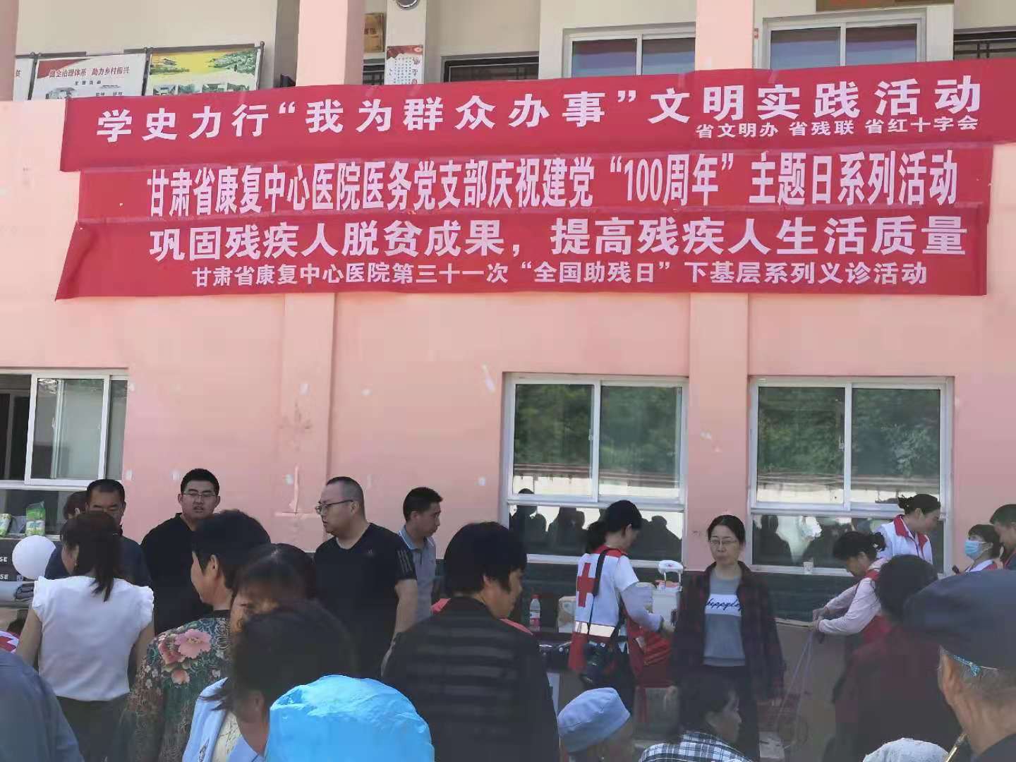 为进一步推动党史学习教育走深走实,发挥党组织战斗堡垒作用和党员先锋规范作用,持续加大乡村振兴帮扶工作力度,6月10日,省文明办联合省残联、省红十字会在文县石鸡坝镇陶家湾村开展慰问老党员、暖心助残、应急救护讲座、爱心义诊、物资发放等“我为群众办实事”志愿服务文明实践活动,省康复中心医院应邀派出3名医护人员赴文县为群众开展爱心义诊。