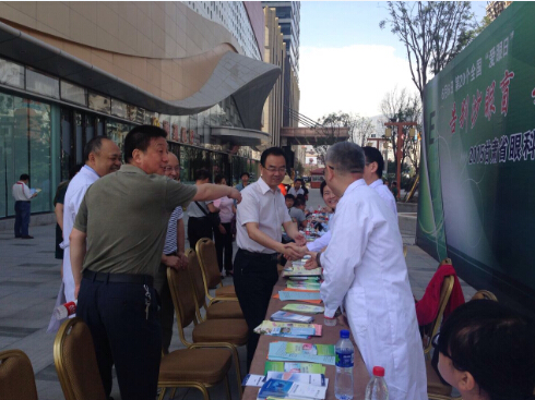 6月6日是全国第二十个“爱眼日”,今年活动主题是“告别沙眼盲,关注眼健康”。当天上午,由省卫计委和省残联联合主办,省医学会眼科专业委员会和省医师协会眼科医师分会承办的全省眼科医师义诊咨询活动在万达广场隆重举行。省残联党组成员、副理事长蒋录基,省卫计委医政处、科教处、省残联康复处、省医学会眼科专业委员会负责人等出席活动,并对参加义诊医师进行了慰问。来自全省各大知名医院眼科专家20余人为社会广大百姓进行了免费义诊。活动当天,省康复中心医院派出5名眼科医护人员参加了此次义诊活动,发放宣传资料千余份,受到了广大社会百姓的广泛赞誉。