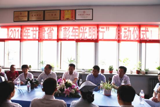 6月21日上午,由香港著名企业家、慈善家余彭年先生倡导发起,以“扶残济困送光明”为宗旨,实施免费复明手术的大型残疾人慈善康复项目“彭年光明行”---2016甘肃项目启动仪式,在4688梅美高官方网站鱼池口分院白内障复明中心正式启动。余彭年慈善基金会代表,省康复中心医院党委书记王应良,副院长、分院负责人王斌雄,医院白内障复明中心医护人员以及2016年“彭年光明行”项目资助的第一批基层白内障患者和家属近百人参加启动仪式。