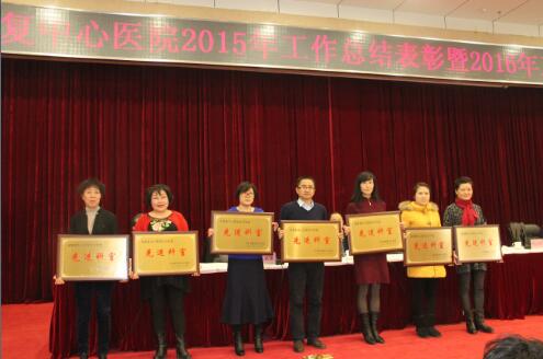 会议对2015年度涌现出的6个先进科室、35名优秀等次和69名先进工作者以及荣获医院比赛获奖集体、个人和全年个人康复业务量前三名人员进行了表彰,并颁发了奖牌、奖状;对获得上级部门表彰奖励的集体和个人进行了通报表扬;获得表彰的先进集体和先进个人代表作了发言;中心党政班子分别与各科室签订了《2016年工作目标责任书》。