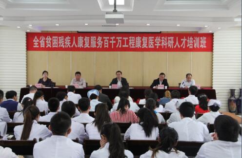 为积极响应省政府《2015年贫困残疾人康复服务“百千万”工程实施方案》和省残联《关于分解下达2015年贫困残疾人康复服务“百千万”工程项目任务的通知》等文件精神,进一步加强康复人才培养工作,打造一支康复学科可持续发展的人才梯队,大力推进康复服务体系建设,9月23日上午,由省残联主办、省康复中心承办、兰州大学循证医学中心实施、省康复医学会和省残疾人康复学会协办的2015年贫困残疾人康复服务“百千万”工程康复医学科研人才培养项目启动仪式在省康复中心医院隆重举行。省残联党组成员、副理事长蒋录基,兰州大学循证中心主任、循证医学研究所所长杨克虎,省残联康复处负责人、省康复中心医院党委书记、常务副院长以及授课专家和来自全省的首批学院百余人出席会议。