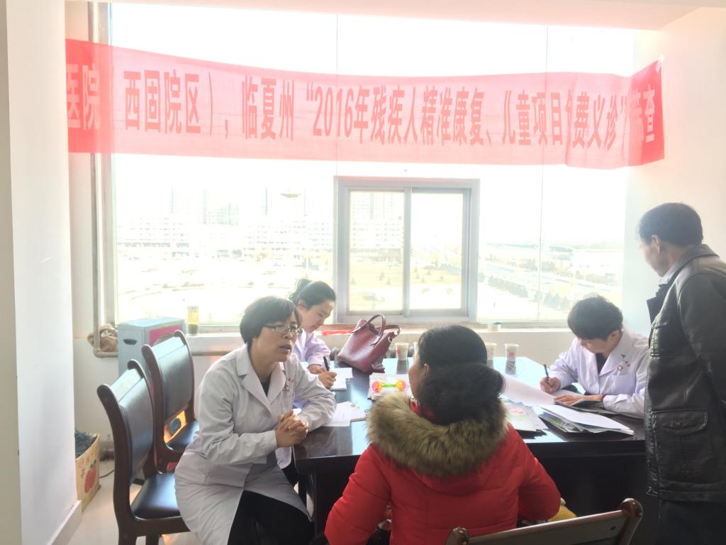 11月23日,省康复中心医院合作医院与临夏州和政县残联共同开展了2016年残疾人精准康复、儿童项目免费义诊”筛查活动。共筛查各类残疾患儿30余人,并对脑瘫、智力障碍、孤独症项目患儿进行了信息登记。此次筛查义诊活动,是合作医院在临夏州实施开展中残联2016年残疾人康复服务项目民生工程的第二站,旨在通过深入基层征集残疾患儿,达到早发现、早干预、早治疗,落实精准康复服务残疾患者的重要举措。
