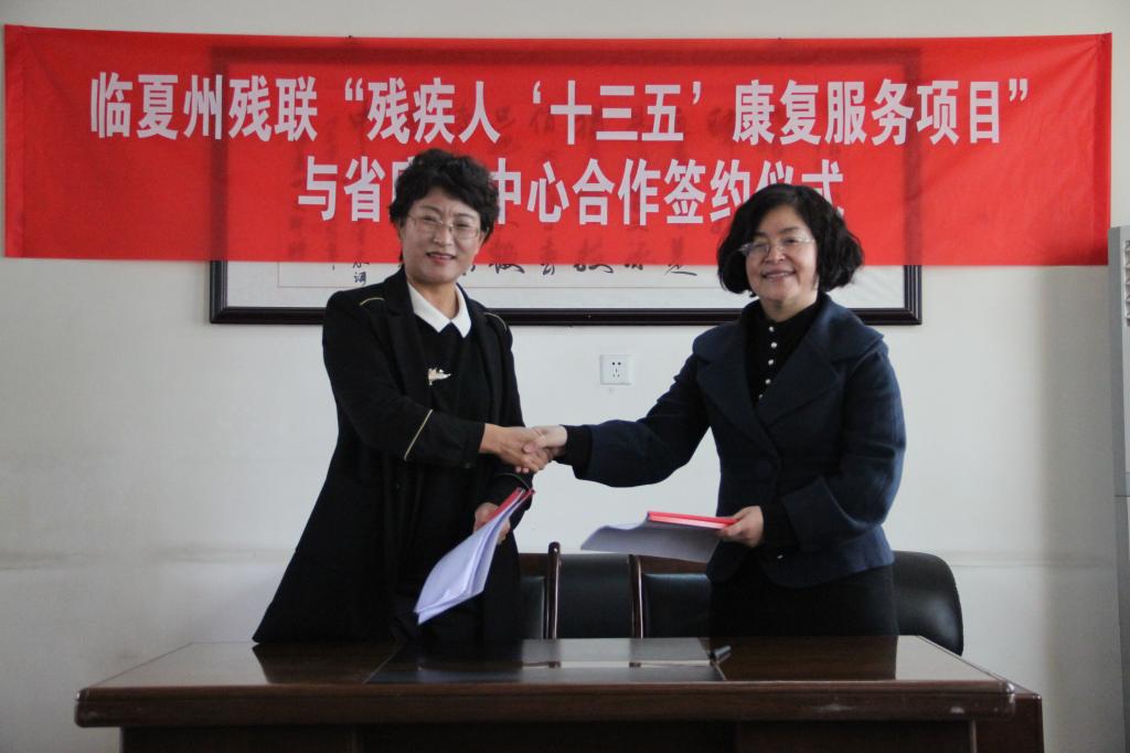 省康复中心医院与临夏州残联签订“残疾人‘十三五’康复服务项目”合作签约仪式现场