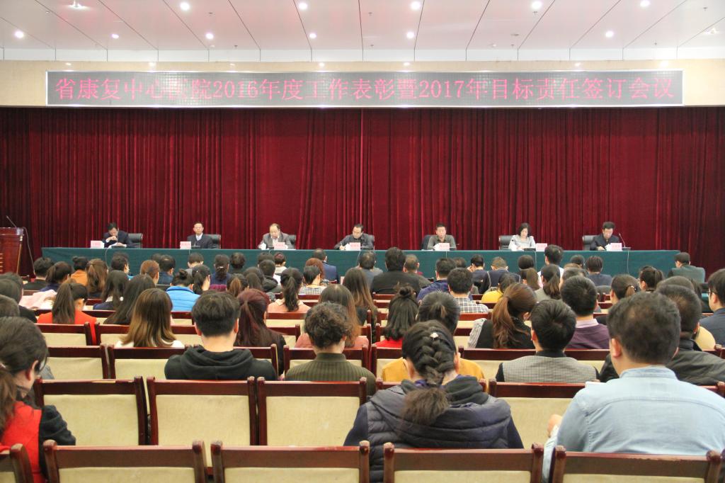 会上,医院党政班子成员分别宣读了2016年度医院团体和个人先进表彰决定,并为获奖团体和先进个人颁发了奖状、奖牌。先进集体和个人代表分别作了表态发言。医院党政负责人共同与各科室签订了2017年目标责任书。医院院长代表医院从牢记使命,不忘初心,发展成效更加明显;统筹规划,盘活资源,发展后劲不断增强;集思广益,谋篇布局,管理水平不断提升;明确主体,敢于担当,党建、宣传工作有声有色等四个方面,对2016年度工作作了回顾总结;并从进一步加强中心基础设施建设、巩固和强化人才团队建设、全面推行综合绩效管理体系、加大项目实施力度、推进康复医疗集团建设、加强党建宣传工作、狠抓医疗、后勤两项安全等七个方面对2017年工作作了安排部署。