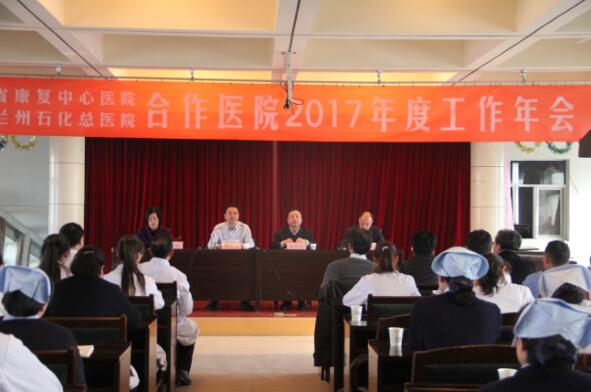 12月22日下午,省康复中心医院合作医院召开2017年度工作年会。省残联党组成员、副理事长蒋录基出席会议并讲话。省康复中心医院和兰州石化总医院党政班子以及两院干部职工百余人参加会议。石化总医院书记主持会议。