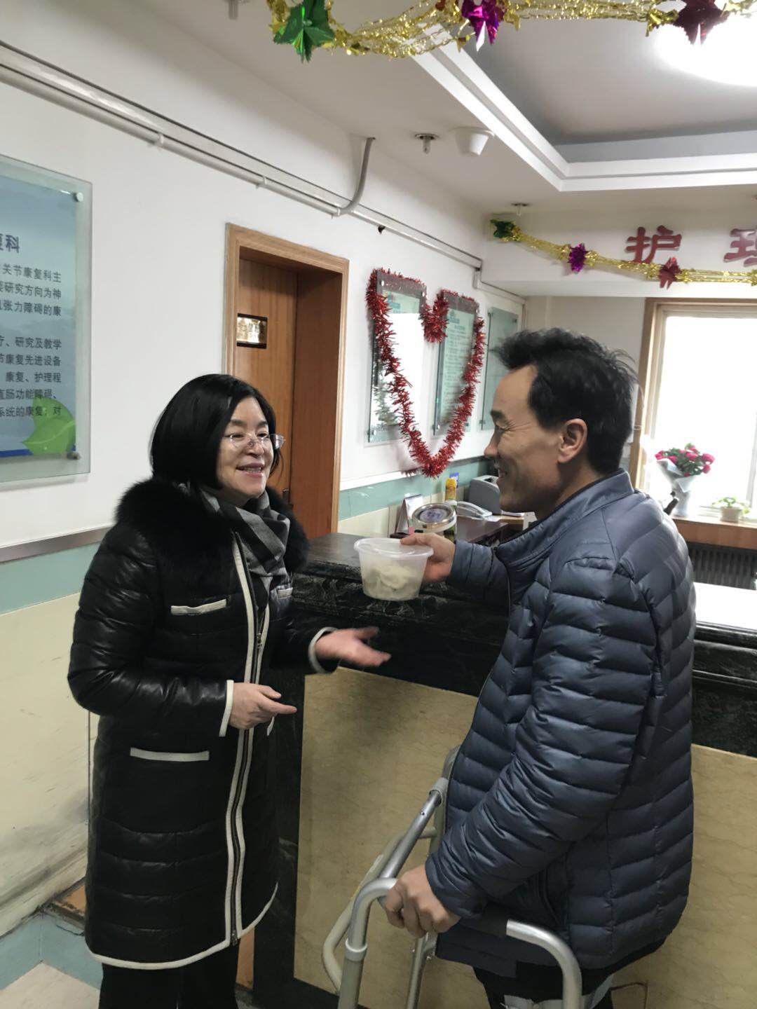2月15日和16日,农历除夕和正月初一,省康复中心医院在家班子成员带着浓浓关爱和新春的祝福,向坚守在医院各工作岗位的值班人员拜年,并深入病房看望慰问住院患者,送上节日饺子和春节慰问品,使广大值班医护人员和患者感受到家一样的温暖。院领导每到一个科室,都与医护人员一一握手,祝福他们新春快乐,感谢他们舍小家、顾大家服务患者,对他们的奉献精神致敬,并叮嘱值班人员要坚守岗位,做好交接班工作,为患者提供高效优质的康复医疗服务。广大值班人员表示,一定坚守好岗位,让每位患者在医院获得满意的治疗和护理;广大患者因疾病不能回家团聚,一份充满爱心祝福情意的饺子,让他们不再孤单,深切感受到了医院这个大家庭的温暖和人文关怀。