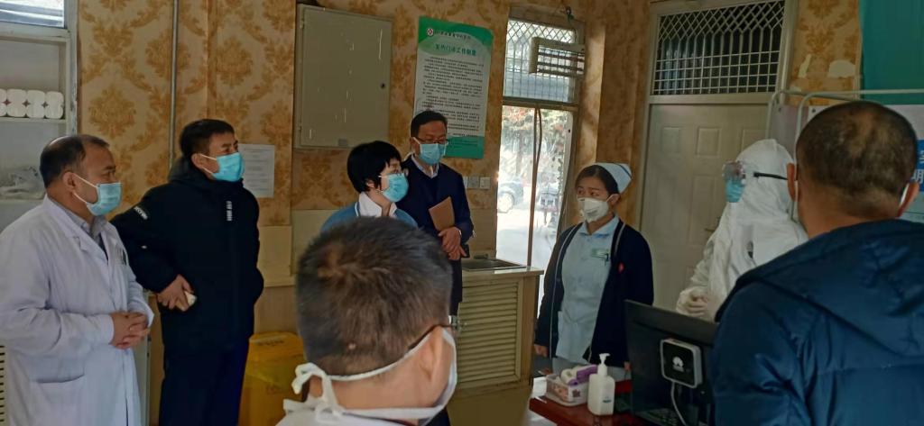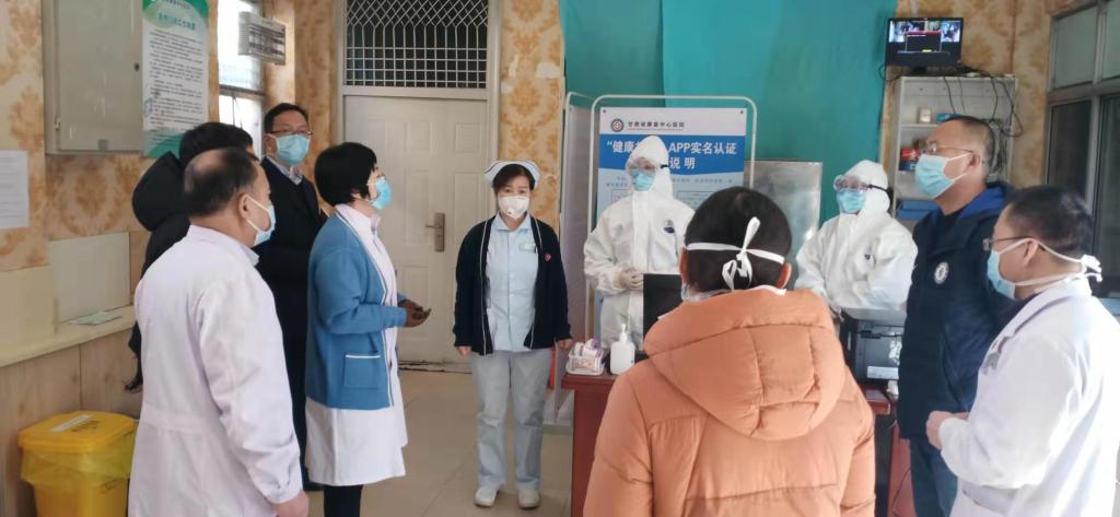 1月30日,省康复中心医院党委书记陈昇、院长石秀娥、工会主席王建忠一行到鱼池口分院,对分院疫情防控预检分诊、发热门诊、发热病人分流转移、院内感控预防、医护人员规范操作以及自身安全防控等方面工作全面进行督导检查,并看望慰问奋战疫情防控一线职工。
