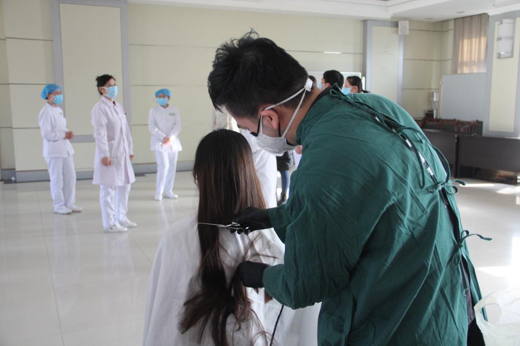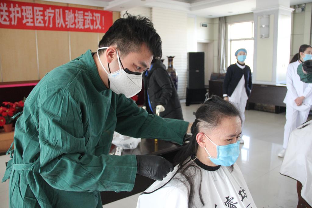 他们为了能更好地节省穿脱防护服时间、最大限度的减少可能的感染,毅然决定剪去飘飘长发,以“全新造型”奔向第一线。美发店得知要为这些奔赴一线的“英雄”们剪发时,特地派人上门服务并减免了全部免费。
