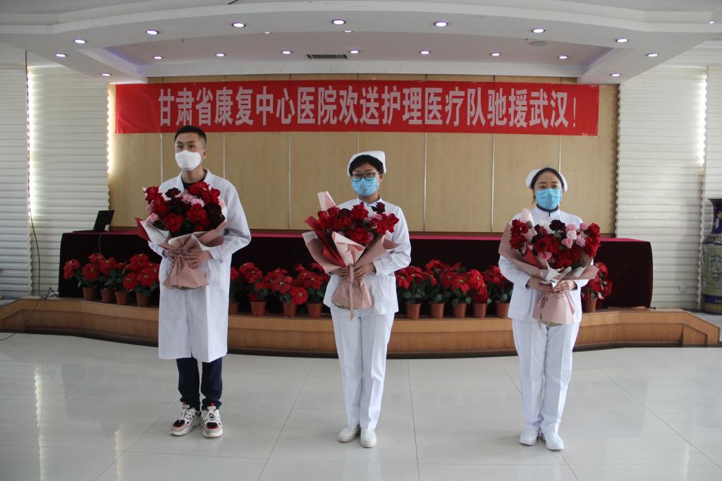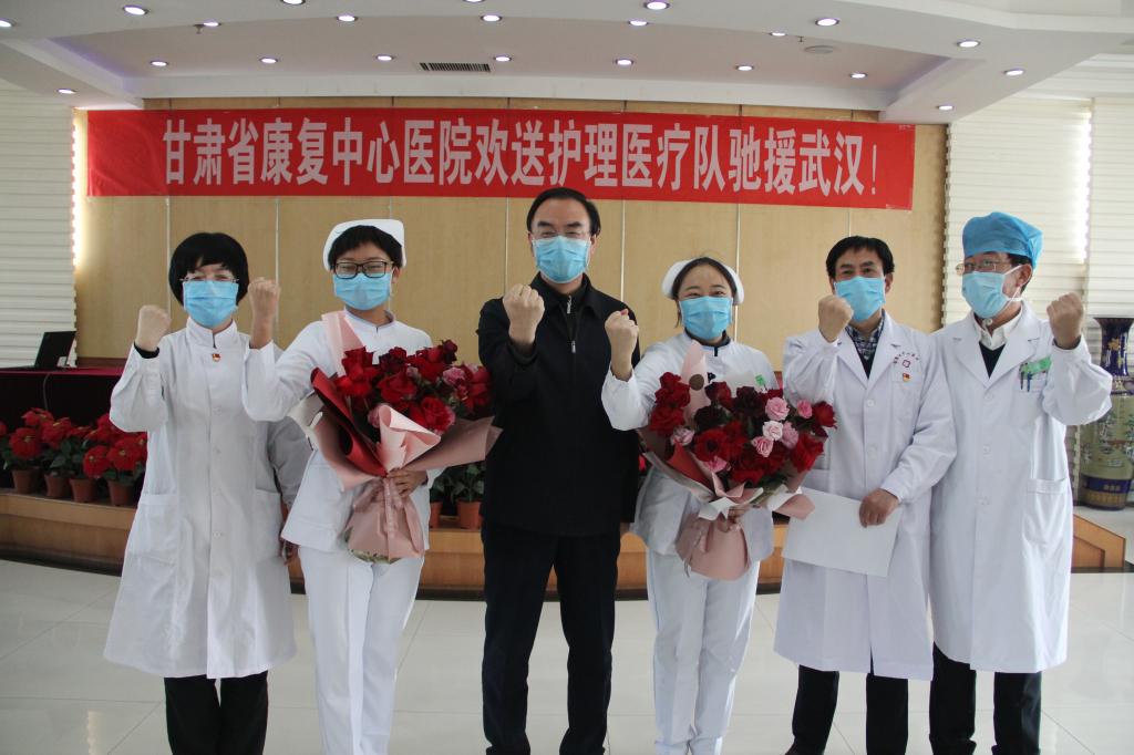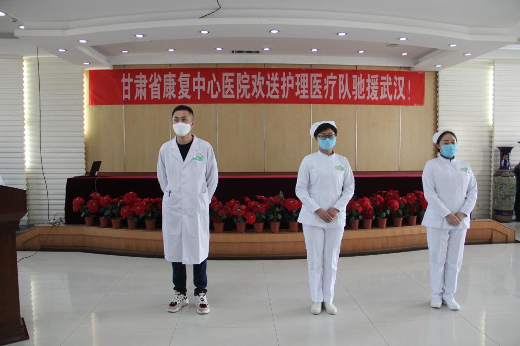 白衣一袭赴江城,敬佑生命驱病瘟。武汉新冠疫情发生后,我省迅速组织力量驰援武汉,聚力新冠肺炎疫情防控,“甘肃力量”在不断汇聚。2月17日,4688梅美高官方网站3名队员肩负崇高使命,怀着必胜信心,随甘肃省第五批援助湖北医疗队再次出征。这是省康复中心医院之前已经送出5名护理人员驰援武汉后,又一批出发的援鄂人员。甘肃省残联党组成员、副理事长蒋录基,医院党政班子为他们举行了简短而庄严的出征仪式。