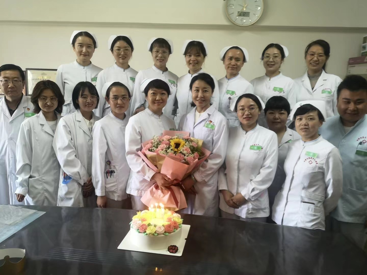为表彰在护理工作中作出优异成绩的护理人员,经过层层筛选,共评选出20名“星级护士”,并颁发了荣誉证书,激励广大护理人员以南丁格尔为榜样,激发更大热情,努力作为;组织部分护理人员参加了省卫生健康委题为《护理人员积极心态与和谐家庭》的远程视频讲座,以期缓解护理人员在工作繁重、精神压力大的环境中,释放压力,调整心情,做到与患者、家庭和自身的和谐。活动当天,医院共为21个护理单元精心准备了蛋糕和鲜花,为她们送上了最美、最真挚的祝福,希望广大护理人员能以此次活动为契机,不断提升业务能力和护理服务水平,继承和发扬护理事业的光荣传统,以爱心、耐心、细心和责任心对待每一位患者,努力做好护理工作,为康复护理事业贡献自己的力量。