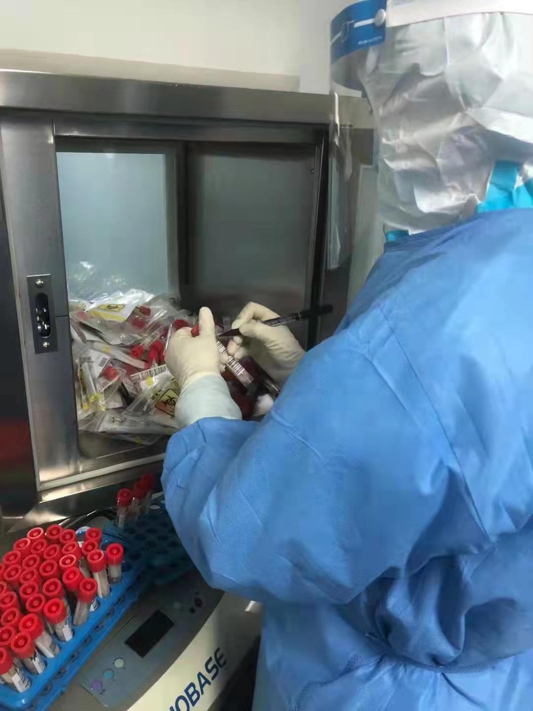 大家每天在严格封闭的白色隔离服里连续工作,是对检测人员体力和耐力的巨大挑战。负压环境,穿着三级防护设备,一轮就是六七个小时以上。“这样的工作环境只有切身体会后才能感受到其间的辛苦,而他们几乎每天都如此坚守,任劳任怨。”检验科负责人陈涛如是说。