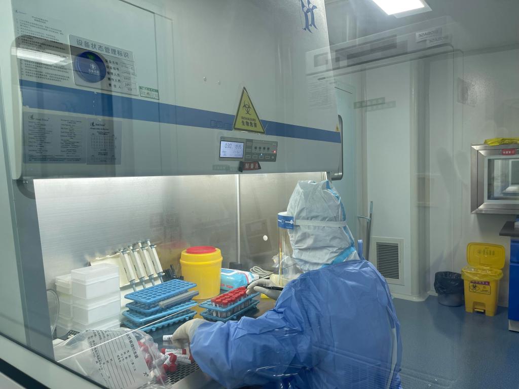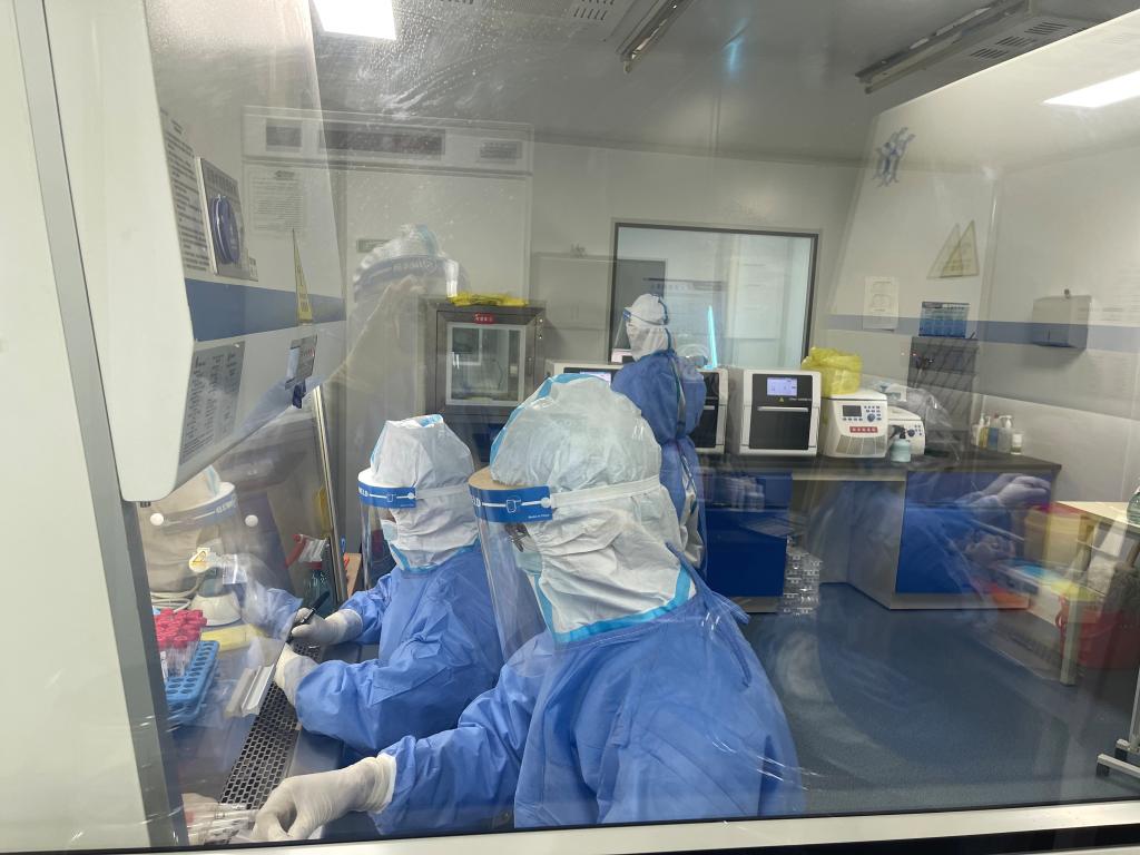 从20日至27日,医院PCR实验室完成本院核酸检测任务近4万人份,一份核酸检测从采样到出具报告,需要经历样本灭活、配制体系、提取核酸、PCR扩增、实验结果判断5个环节,每一步都存在感染风险,实验过程不仅需要谨慎操作,还需严密防护,才能与可怕的新冠病毒作战。为了保证检测质量和生物安全,他们每时每刻都要严谨对待每一份检测标本。