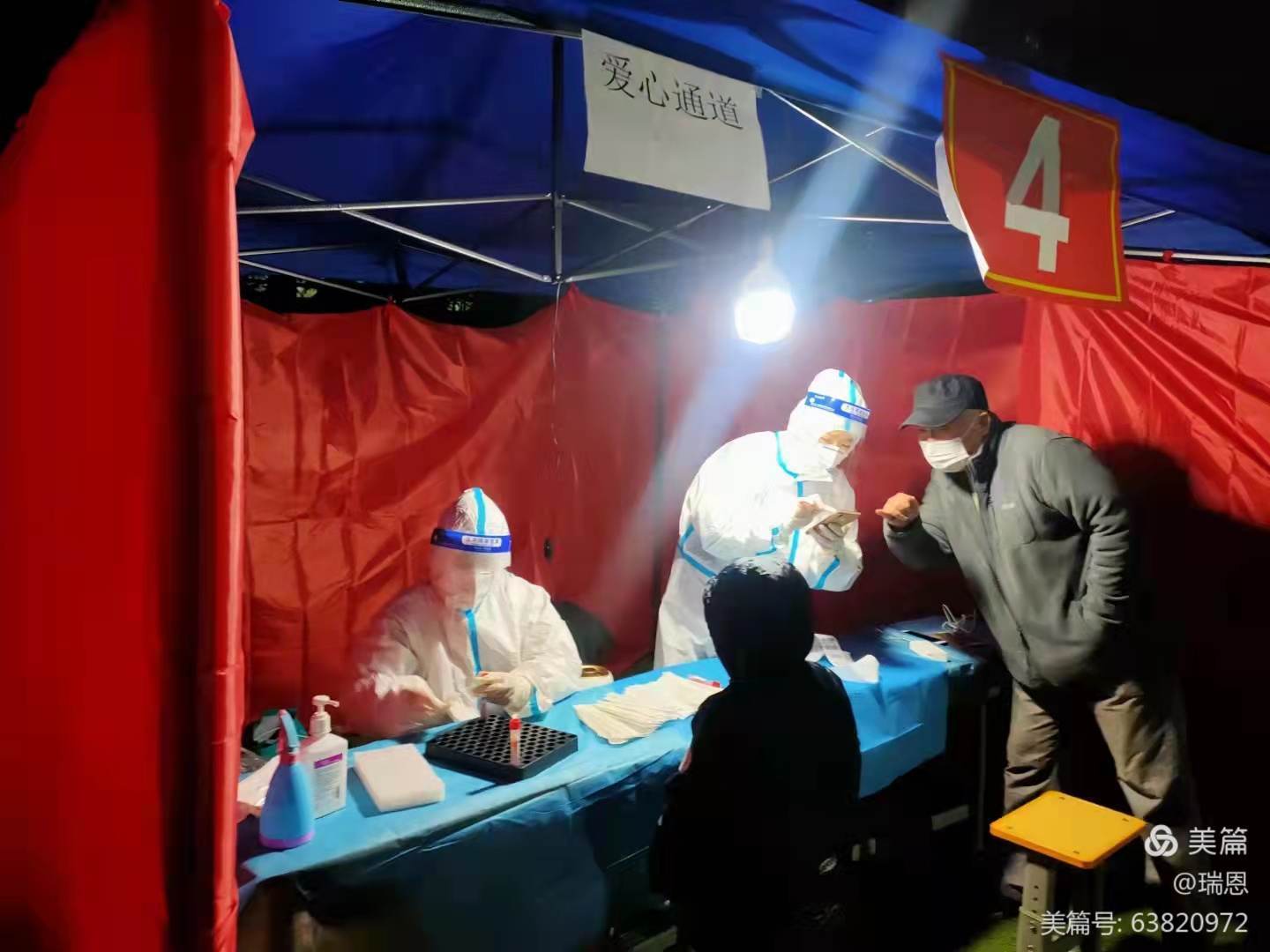 我是手术麻醉科护士长陶彩云。10月下旬,新冠病毒笼罩金城,人民群众生命安全受到严峻威胁,紧急开展城区全覆盖多轮核酸检测成为发现病毒、防止病毒扩散、战胜疫情的首要关键节点。守护生命、抗击疫情、集结出发的号角再次吹响,医院紧急抽调人员驰援兰州市为重点人群开展多轮核酸检测。大家争相投名,我和科里的八名同志有幸被医院选中,会同大部队分赴兰州市各大社区、兰州新区以及医院预检分诊处,拉开了决战新冠病毒的战斗序幕。十多天来,我们充分发扬手术麻醉人敢于吃苦、不畏风险、连续作战的奋斗精神,为抗击疫情、勇挫病毒奋力拼搏着,有时24小时连轴作战,风餐露宿,缺衣少水,这对任何一个人而言都是体力和耐力的挑战,但对我们确是再平常不过,因为我们早已习惯了“无影灯”下时间定格、忘却自我的工作状态……