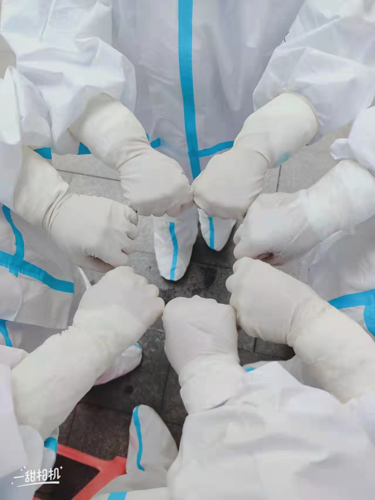平时,最让我们感动、欣慰和喜悦的时刻,就是听到我们采集工作无遗漏、无偏差时,就是听到我们采集的群众核酸检测都是阴性时,就是看到科室主任郭元生空闲时发来他带领留守同志们准备手术、主动志愿服务、温情关心图片的时候……那一刻,我们喜悦和泪水交织相伴,我们口罩背后满脸堆砌的笑容,让我们忘记了所有的悲痛和劳累……