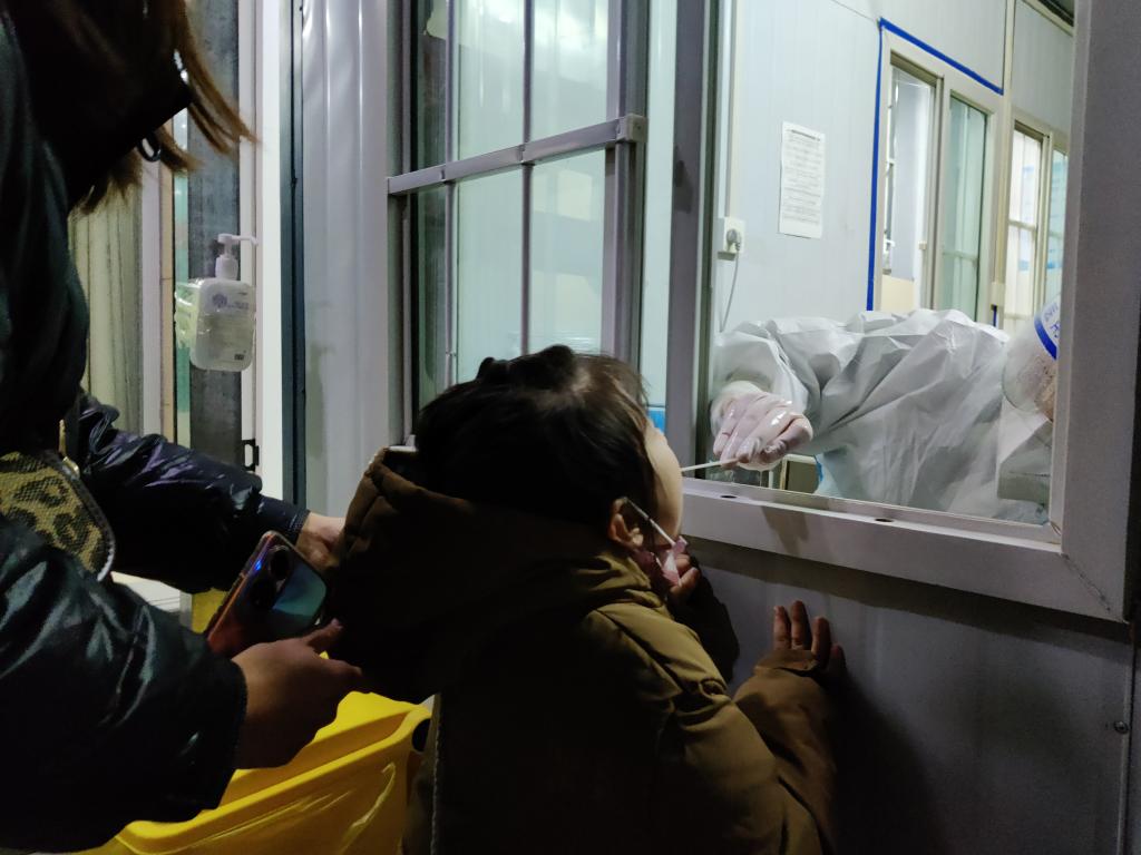 4月16日夜晚,细雨蒙蒙,室外气温几乎低至冰点,但医院门口等候核酸检测的群众依然排着长队,队伍中,老人和马上复学的孩子居多,他们在寒冷的风雨中焦急地等待着。为了保障老人、孩子及早得到检测,以免受凉感冒,医院立即启动应急预案,开启老人和孩子采样绿色通道,并增加人手进行疏导和维护秩序。在医院的有力安排下,各项采样工作有序稳妥进行,老人和孩子很快就采集了核酸。行动中,广大医务人员以医者使命,竭诚为群众提供人文关怀,全力呵护百姓生命健康。