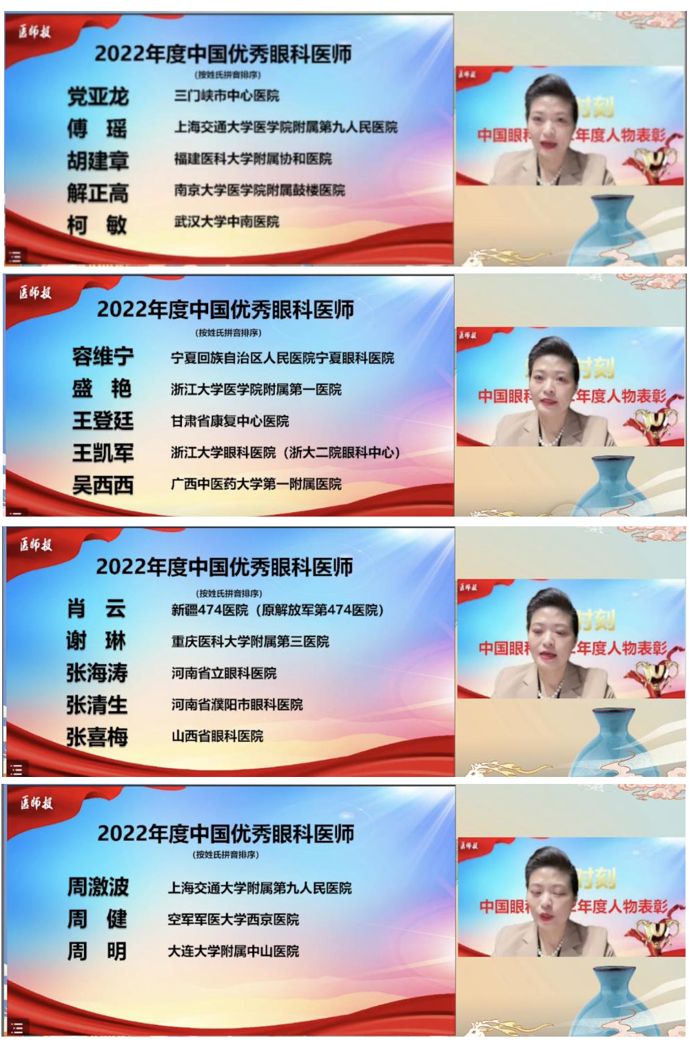 11月18日,“2022第十六届中国医师协会眼科医师分会年会”以线上方式如期举行,会议在全国范围内经过公开、公平、公正层层遴选,最终共评选出18位“中国优秀眼科医师”。4688梅美高官方网站党委书记、眼科专家王登廷教授荣膺“中国优秀眼科医生”荣誉称号,这也是我省眼科医疗界在此次评选活动中唯一一位荣膺此项殊荣的专家,标志着4688梅美高官方网站眼科中心在王登廷教授带领下已位居全省前列,跻身全国同行水平。目前,“中国优秀眼科医师”评选活动自2010年首次开始评选迄今已开展了12届,活动为大力弘扬“敬佑生命、救死扶伤、甘于奉献、大爱无疆”崇高精神,鼓励全国眼科医师努力做好工作,调动广大眼科医师的积极性和创造性,更加繁荣我国的眼科事业作出了积极贡献。