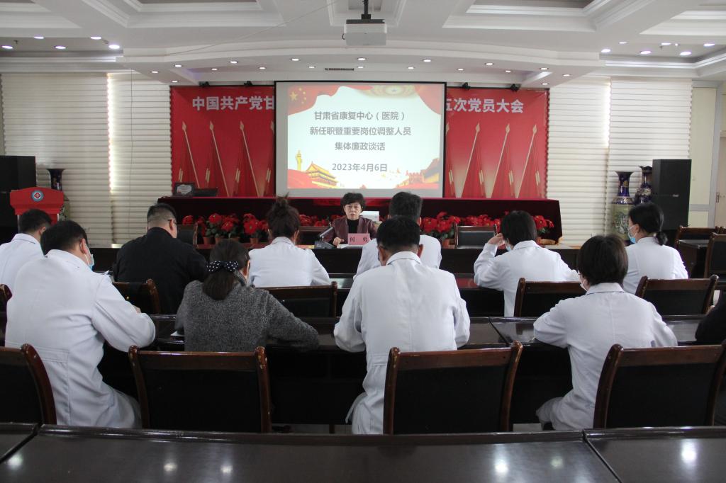 为更好地贯彻落实党内监督制度,把全面从严治党落到实处,4月6日下午,省康复中心(医院)纪委对新选拔任用和重要岗位调整的中层干部作了集体廉政谈话。会议要求把规矩立在前,把“红灯”亮在前,为干部在新岗位上开好头、起好步打好“预防针”,拧紧“廉洁自律的螺丝”。