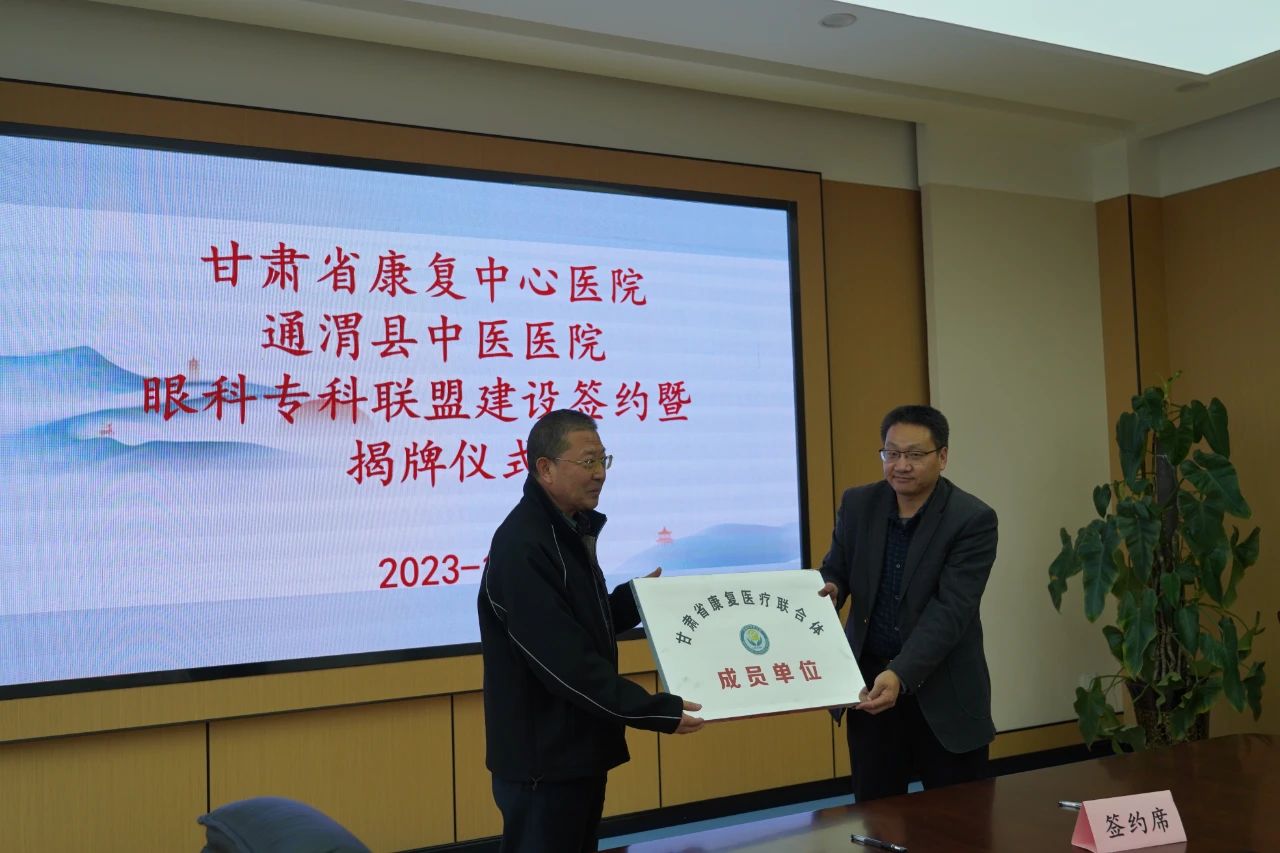 10月21日,省康复中心(医院)与通渭县中医医院紧密型康复医联体(眼科专科联盟)正式签约并授牌。旨在两院通过建立紧密型康复医联体,在学科建设、人才培养、技术指导、学术交流、科研合作、双向转诊等方面展开深入合作交流,通过资源共享、优势互补、共享互通、上下联动等方式,进一步提高通渭县中医医院眼科诊疗水平和服务能力,为广大百姓就近就便提供更加专业精准的康复医疗服务。