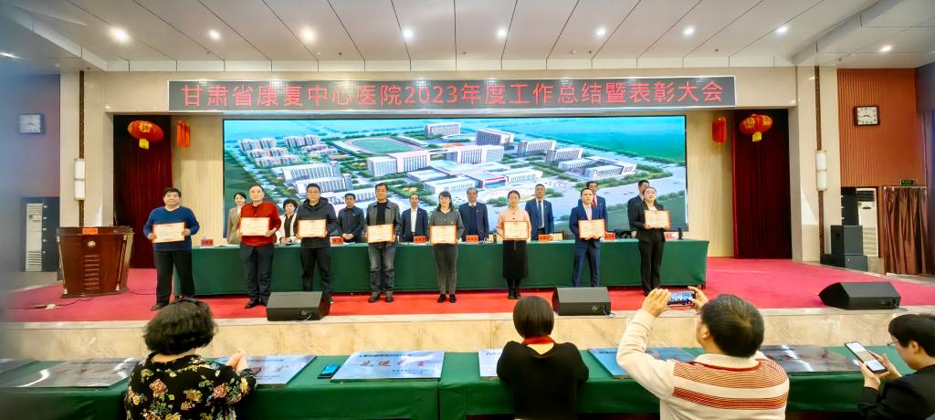 会上,王建云院长作了题为《牢记康复之责 厚植振兴之势》2023年度工作报告。报告从持续加强党建和行风建设、深入开展调查研究、牢固树立安全生产责任意识、丰富高质量发展康复服务体系建设、做好新阶段疫情防控向康复医疗服务转化、提质增效、加强康复医疗联合体和康复医学质量控制中心建设、推进“互联网+康复医疗”服务、加大医教研学力度、有效实施残疾人康复项目、淬炼高质量发展鲜亮底色等方面回顾了2023年工作,并从持续加强党建、严抓安全生产、提升医疗康复技术水平、拓展康复服务范围、加强医联体建设、发挥新区院区辐射带动、提升管理水平等方面对2024年工作作了展望。党委副书记、纪委书记何勇宣读了《关于表彰2023年度先进科室和优秀档次人员的决定》;与会领导为获奖科室、先进个人代表颁发了奖状、奖牌。