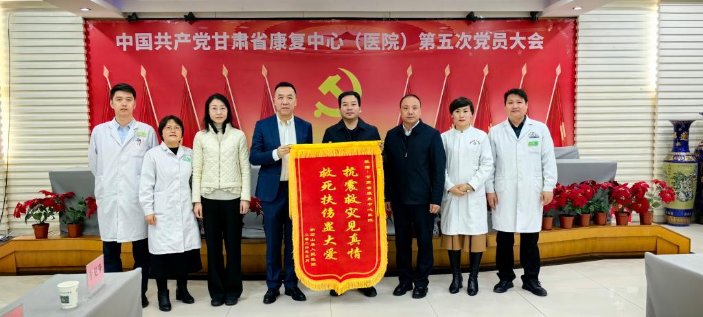 2月5日,积石山县人民医院副院长韩凯一行来到省康复中心(医院),专程送上“抗震救灾见真情救死扶伤显大爱”致谢锦旗,向中心(医院)在地震伤员救治中医者仁心、大爱无疆的精神致以衷心感谢和崇高敬意。