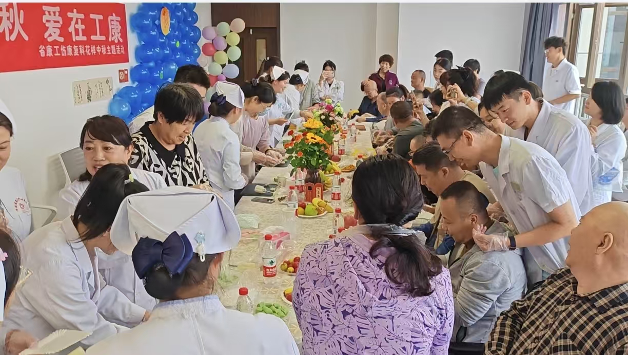 9月13日,在中秋佳节来临之际,省康复中心(医院)综合内科(工伤康复科)全体医护人员组织开展“医路相伴 浓情中秋”活动,与住院残疾患者共度中秋佳节。
