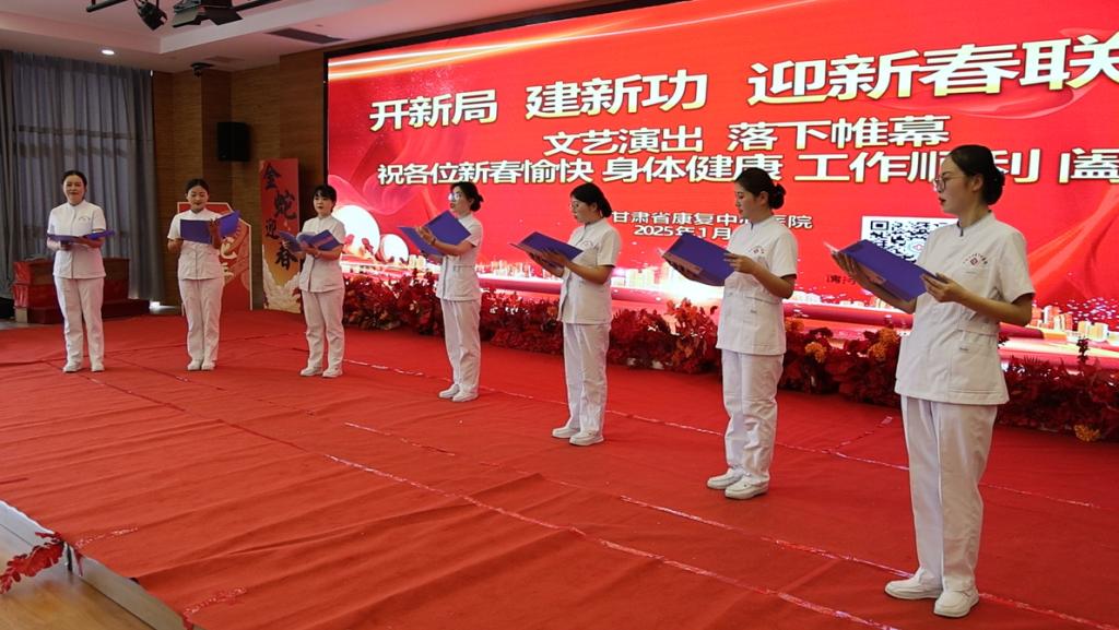联欢会在开场舞《张灯结彩》喜庆而明快的舞姿中拉开序幕。幽默的三句半、感人的歌曲、青春的舞蹈……所有节目均由科室利用休息时间精心筹备、倾力奉献。演出的十七个精彩节目依次闪亮登场,高潮迭起,精彩纷呈,现场观众有职工也有在院的康复患者,他们看着笑着,掌声与喝彩声此起彼伏。演员们身着盛装,深情演绎,满怀希望迎来更好的2025年。