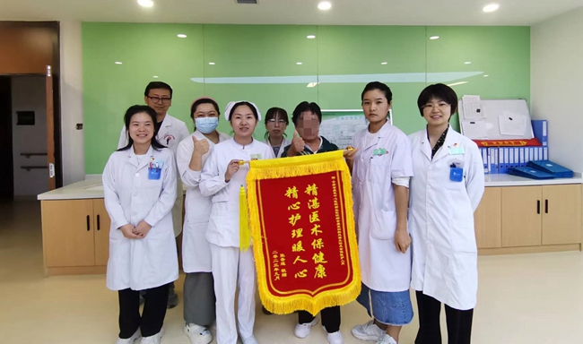 一面锦旗,凝聚着一份温暖、一份认可、一份信赖,更是一种责任和激励。近日,已康复出院的张女士将一面写有“精湛医术保健康 精心护理暖人心”的锦旗送到省康复中心(医院)新区院区综合内科(工伤康复科)医护人员手中,以表达对科室全体医护人员的感激和赞许之情。该名患者入院时左侧肢体仅能抬离床面,左手有屈曲动作,不能抓物,日常生活全部依赖家属,下肢不能站立,不能负重,入院后,复查头颅ct见血肿吸收不明显。科室韩灵善主任亲自查房会诊下,制定了治疗方案。经过活血化瘀改善循环治疗1周后,血肿可见明显吸收;通过规范专业的运动治疗、作业治疗、理疗等综合康复训练后,患者上肢能抬举过头,左手可精细运动,能独立步行,步态平稳,穿衣、系纽扣、梳洗、吃饭、上下楼梯都能自己完成,达到了康复治疗目标已出院,得到患者和家属赞誉。