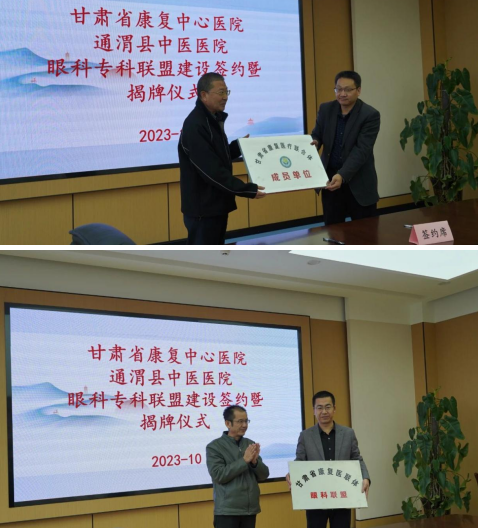 10月21日,省康复中心(医院)与通渭县中医医院紧密型康复医联体(眼科专科联盟)正式签约并授牌。旨在两院通过建立紧密型康复医联体,在学科建设、人才培养、技术指导、学术交流、科研合作、双向转诊等方面展开深入合作交流,通过资源共享、优势互补、共享互通、上下联动等方式,进一步提高通渭县中医医院眼科诊疗水平和服务能力,为广大百姓就近就便提供更加专业精准的康复医疗服务。