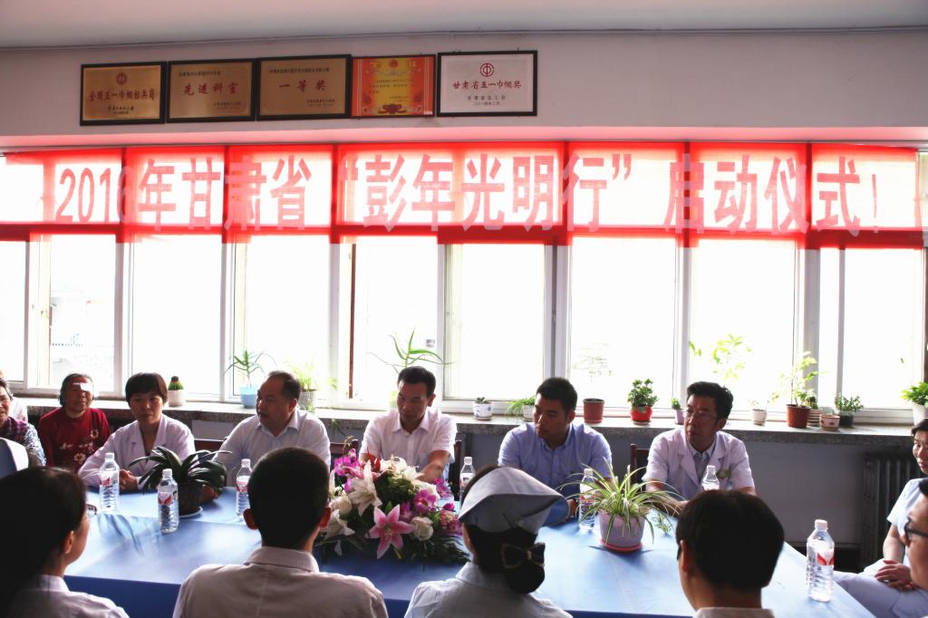 6月21日上午,由香港著名企业家、慈善家余彭年先生倡导发起,以“扶残济困送光明”为宗旨,实施免费复明手术的大型残疾人慈善康复项目“彭年光明行”---2016甘肃项目启动仪式,在4688梅美高官方网站鱼池口分院白内障复明中心正式启动。余彭年慈善基金会代表,省康复中心医院党委书记,副院长、分院负责人,医院白内障复明中心医护人员以及2016年“彭年光明行”项目资助的第一批基层白内障患者和家属近百人参加启动仪式。