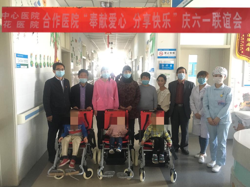 6月1日,在国际儿童节来临之际,为了让正在接受康复治疗训练的残障儿童过一个温馨、祥和和快乐的“六一”儿童节,鼓励患儿家长坚定信念,充满信心,积极配合治疗,力争让孩子们早日康复、回归主流社会,省康复中心医院鱼池口分院和西固合作医院举办“六一”儿童节联谊活动。在社会各界的鼎力支持和关心下,医院分别为医院孤独症、智障、脑瘫等残障儿童捐赠了轮椅、水彩笔、橡皮泥、衣服等爱心物资。医院副院长冯海霞、医护人员、特教老师、患儿与患儿家长、志愿者队伍等百余人参加了活动。