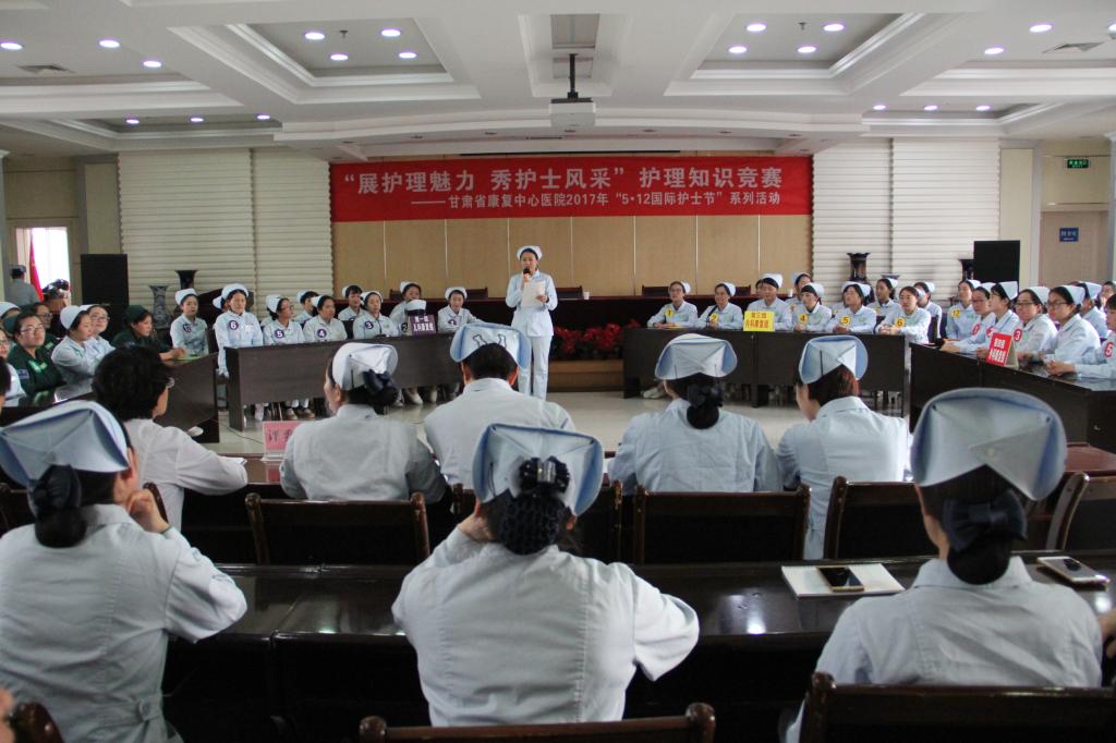为纪念第106个“5·12”国际护士节,发扬南丁格尔“燃烧自己,照亮别人”的奉献精神,省康复中心医院开展了一系列庆祝活动。4月18日下午,医院护理部组织全院180余名护理人员开展了以“展护士魅力 秀护士风采”为主题的护理知识竞赛,分为外科康复组、内科康复组、儿科康复组和其他康复组等4个参赛组,共48名选手参加了竞赛。竞赛设置了个人必答题、抢答题、自选风险题和加赛题等四个环节,紧紧围绕《护理核心制度》、《护士条例》、《护理三基训练》、《护士礼仪》和《康复护理专科知识》等内容全面展开。竞赛现场气氛紧张活跃、精彩纷呈,赢得观众阵阵掌声。经过激烈角逐,最终外科康复组获得团体一等奖。