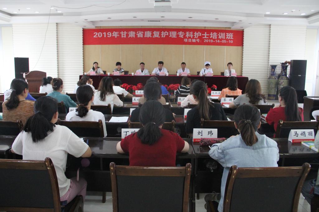 7月9日上午,由甘肃省护理学会主办,4688梅美高官方网站承办,甘肃省护理学会康复护理专业委员会、甘肃省康复医学会、甘肃省残疾人学会康复护理专业委员会协办的2019年甘肃省康复护理专科护士培训班开班仪式顺利举行。省康复中心医院副院长王斌雄、医院部分职能科室负责人及来自省内的14个地州县45名康复护理骨干人才50余人参加开班仪式。开班仪式由甘肃省康复护理专业委员会副主任委员、甘肃省中医药大学附属医院护理部副主任丁劲主持。