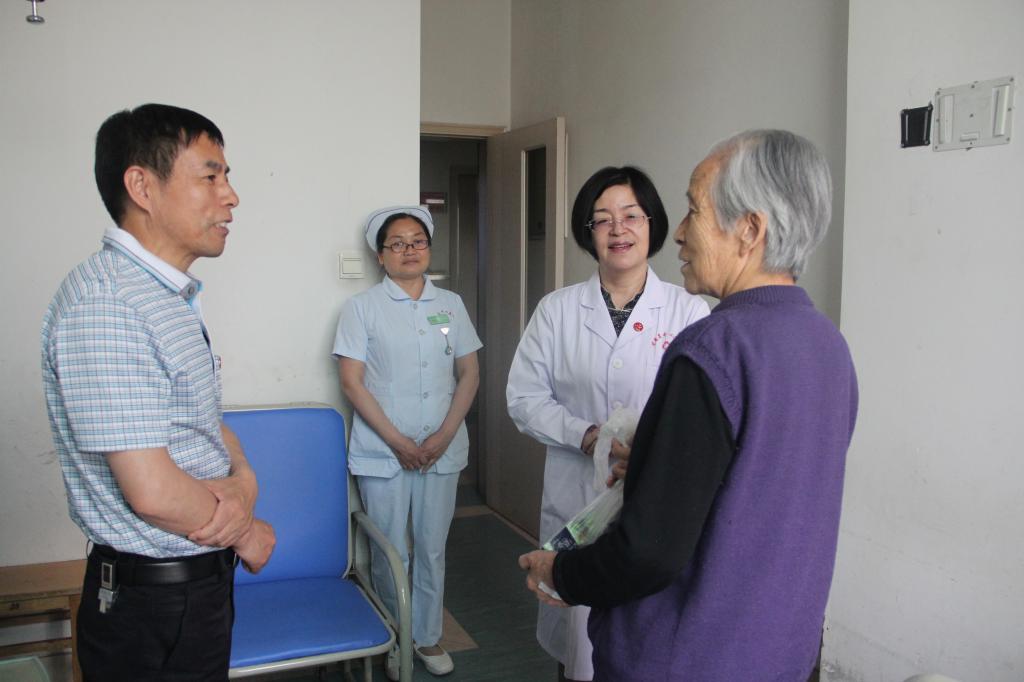 医院领导将爱心捐赠的物资亲手送到住院患者的手中