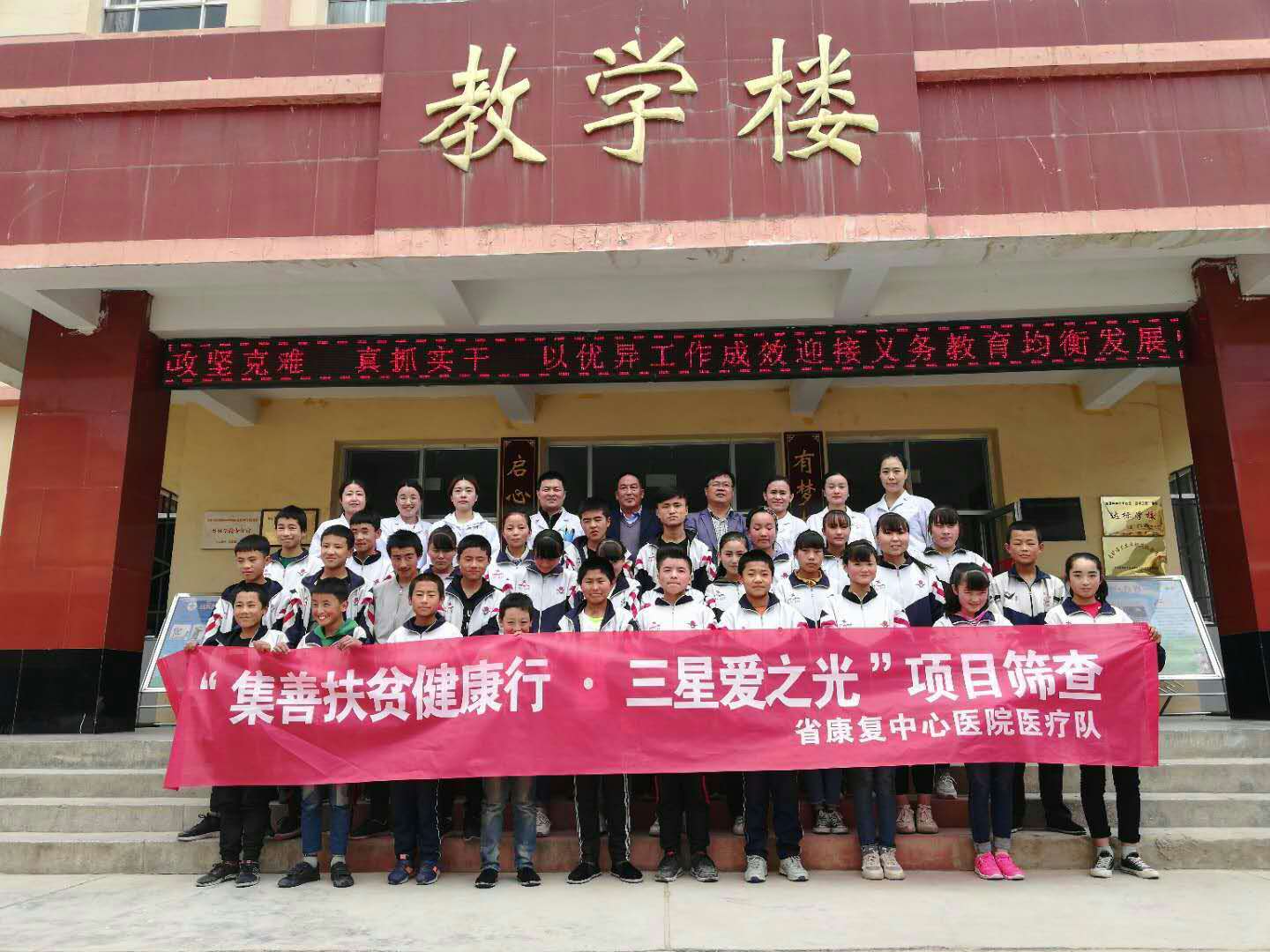 为帮助临夏州青少年白内障、视网膜母细胞瘤、视网膜脱离等患者摆脱病痛,恢复视力和重见光明,中国残疾人福利基金会和中国三星2018年在临夏州启动实施了“集善扶贫健康行·三星爱之光”公益项目。为确保项目任务按期全面顺利完成,作为项目执行定点医院的省康复中心医院于5月27日组派医疗队赴临夏州深入校园开展青少年项目筛查、确定受助对象。本次筛查由省康复中心医院副院长、项目主管领导王斌雄亲自带队。省残疾人福利基金会派项目主管景辉一同前往。省康复中心医院项目办负责全程随队协调保障。