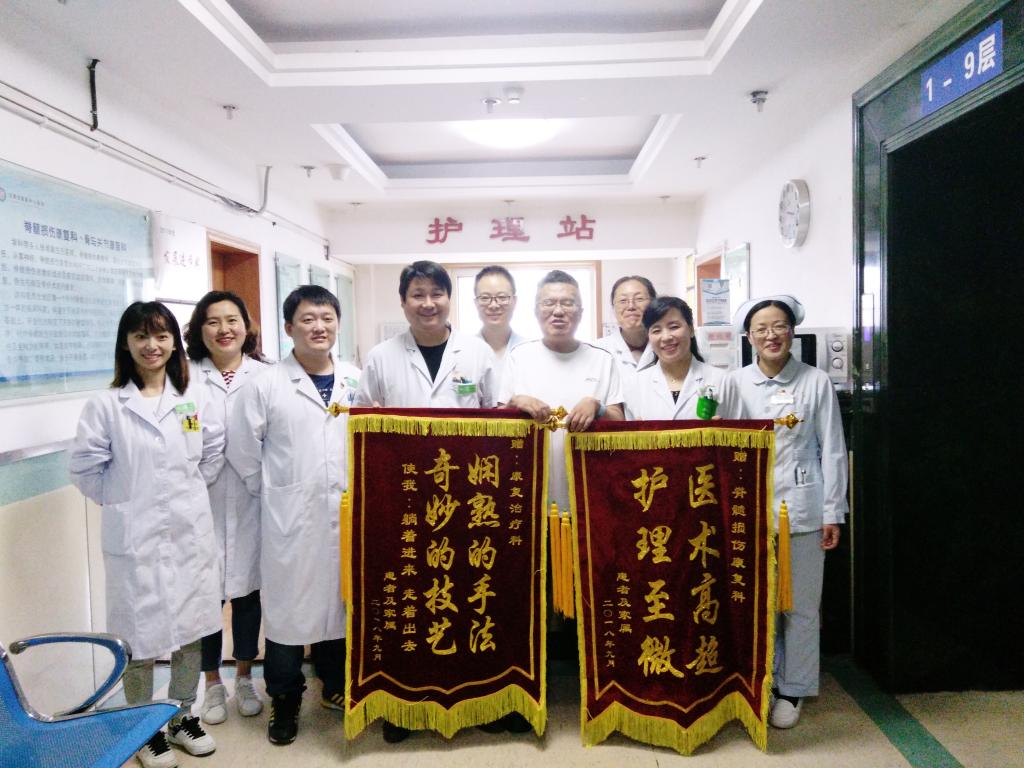 9月21日,一名颈部脊髓损伤患者,经过近一年的专业康复治疗和康复训练,终于站立起来。他踱步来到医院脊髓损伤康复科和康复治疗科,将两面写有“医术高超、护理至微”和“娴熟的手法、奇妙的技艺,使我:躺着进来,走着出去。”字样的锦旗分别送给脊髓损伤康复科和康复治疗科所有医护人员,并喃喃说道:“没有你们,我可能再也站不起来……”一片感激之情溢于言表。