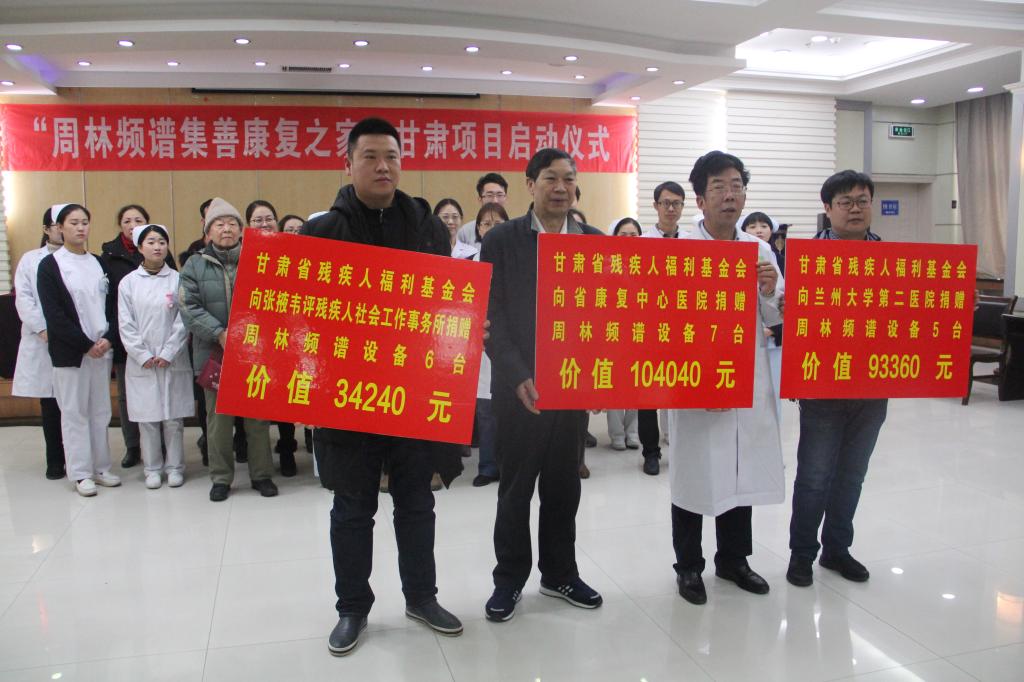 2月7日上午,“周林频谱集善康复之家”甘肃项目启动仪式在省康复中心医院举行。省残疾人福利基金会向医院老年病康复科捐赠了价值共10万余元的7台周林频谱设备仪器,通过项目实施使残疾人体验科技健康,感受周林频谱爱的惠及、爱的扶助和爱的力量,改善残疾人的康复和保健条件。省残疾人福利基金会副理事长杨清友及项目执行有关负责人,医院副院长、老年病康复科医护人员及患者共20余人参加了启动仪式。此次捐赠的周林频谱设备仪器,由北京周林频谱科技有限公司提供。