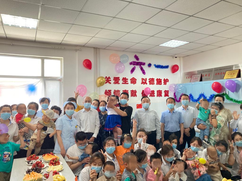 2022年6月1日是第72个国际儿童节,为了让正在接受康复治疗训练的残障儿童过一个温馨、祥和和快乐的“六一”儿童节,鼓励患儿家长一定要坚定信念,充满信心,积极配合治疗,力争让孩子们早日康复、回归主流社会。当天,省康复中心医院本部、鱼池口分院和西固合作医院联合甘肃宝石花医院、团结新村街道定西南路社区社工委、蒙牛别提多美专营店、兰州文书华润幼儿园家长学堂、甘肃顺达实业开发(集团)有限公司等分别为医院孤独症、智障、脑瘫等残障儿童捐赠了爱心物资,祝福残疾患儿早日康复,与残疾患儿共同度过一个美好的节日。医院行政业务负责人、纪委书记以及医院医护人员、特教老师、患儿与患儿家长、志愿者队伍等百余人参加了活动。