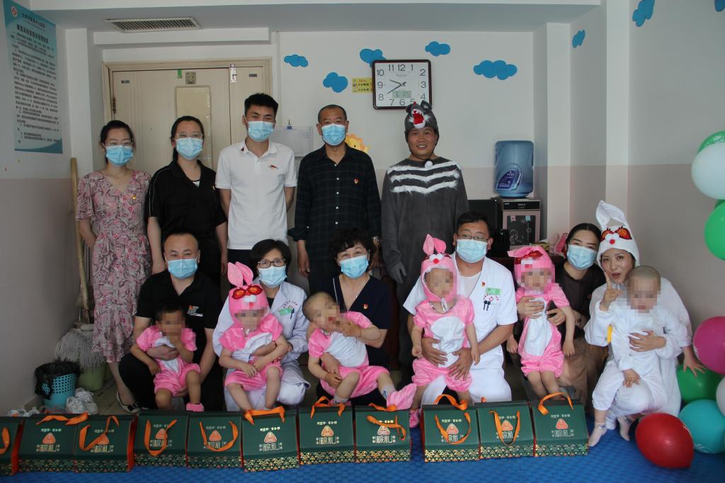 医院行政党支部一行为孩子们送去了粽子爱心礼盒。